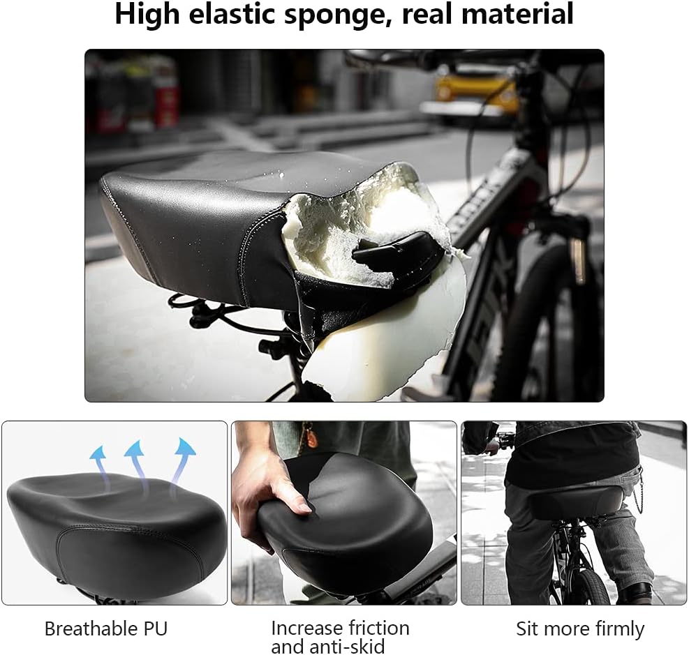 【مناسب للجميع】مقعد دراجة ركوب الدراجات هو مقعد دراجة كبير ممتص للصدمات ومقاوم للغاية، ناعم ومريح، مقعد دراجة بدون ضغط. مصمم للرجال والنساء والأولاد والبنات والأطفال والجميع.