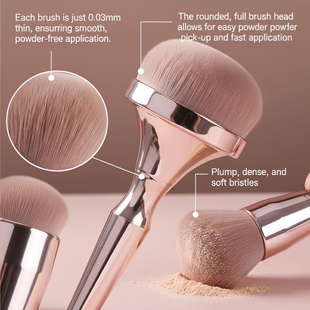 تصميم رائع: تتميز فرش البودرة بتصميم رائع على شكل رأس الفطر، مما يسمح لك بتمشيط مساحة أكبر لتوفير الوقت لوضع المكياج.