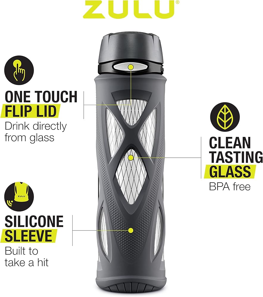 زجاجة مياه زجاجية من زولو أطلس مع غلاف من السيليكون
