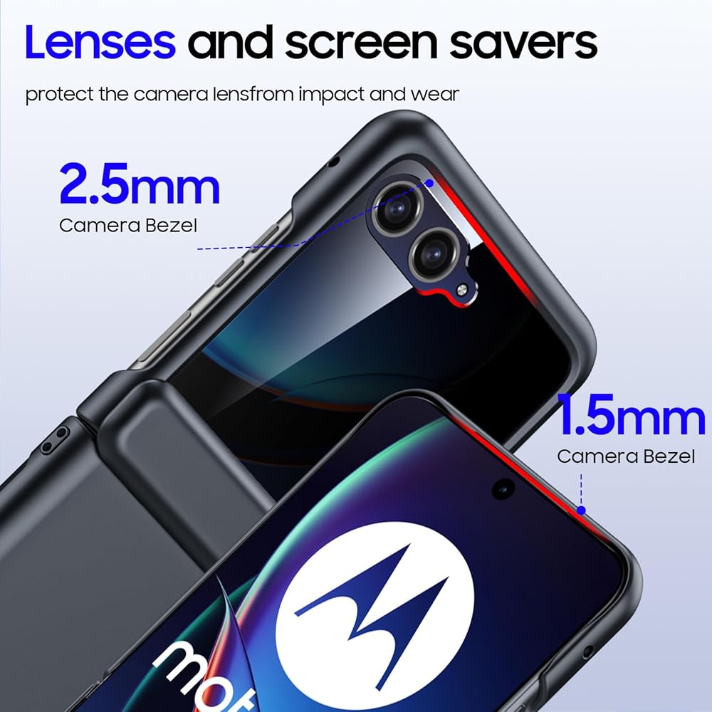 • 💎[واقيات شاشة موثوقة] تحتوي حافظة Razr Plus على واقي شاشة خارجي مدمج عالي الجودة 9H HD ورفيع للغاية ومقاوم للكسر من الزجاج المقوى من الألومنيوم. يحمي الشاشة بأكملها بشكل فعال من الخدوش والصدمات. يتم الحفاظ على حساسية الاستجابة الأصلية بنسبة 100% ودقة اللمس. تتميز حافظة Razr + 2023 هذه بحافة مرتفعة 2.5 ملم حول عدسة الكاميرا وحافة مرتفعة 1.5 ملم حول الشاشة لحماية شاشة هاتفك وعدسته من التآكل والخدوش اليومية.