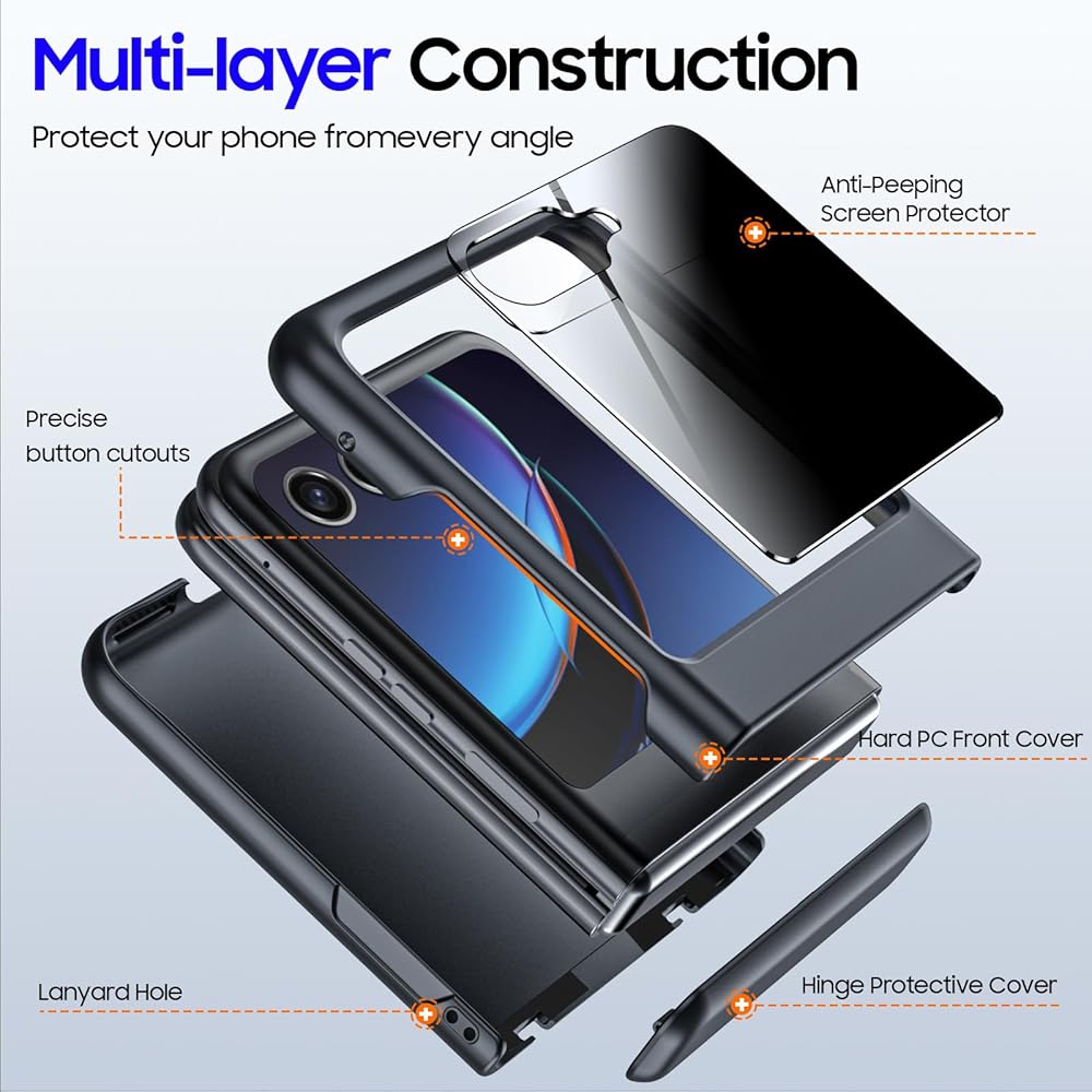 حافظة CENMASO لهاتف Motorola Razr Plus، حافظة Razr Plus مع واقي شاشة للخصوصية وحماية مفصلية نحيفة، حافظة حماية مضادة للخدش وصدمات لكامل الجسم لهاتف Moto Razr + 2023-أسود