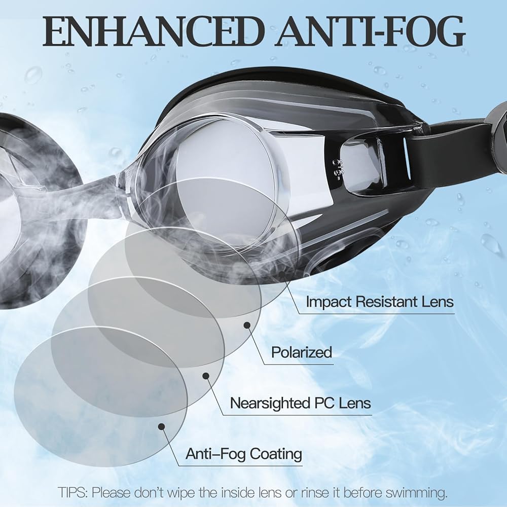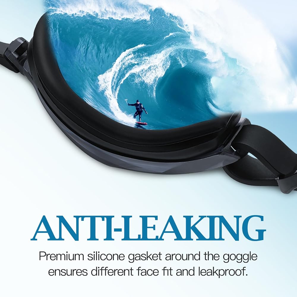 • Anti-Leaking : The swimming goggles have a circular sealed gasket around the goggles is made of high quality soft silicone, in addition to the ergonomic design of the goggles, avoiding water from leaking into your goggles.