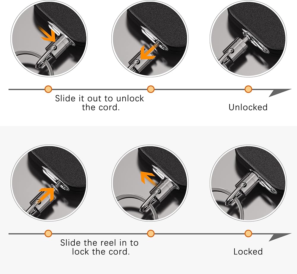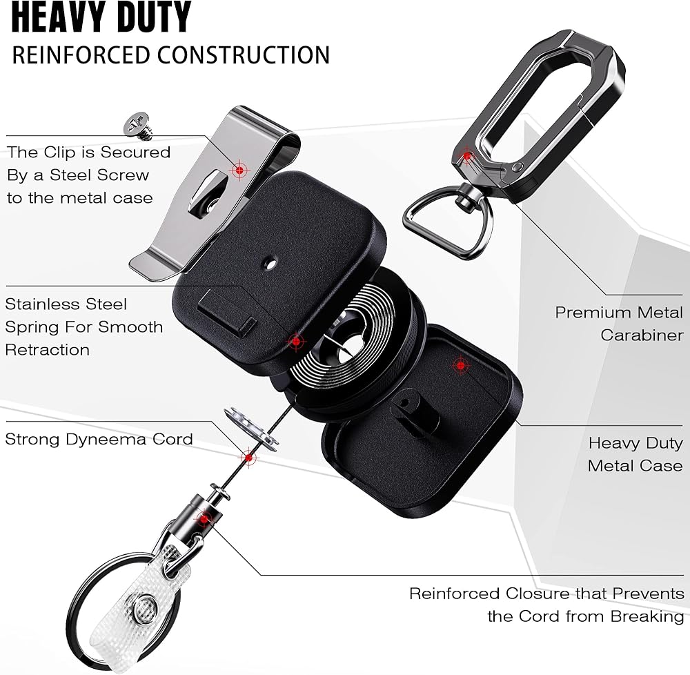 هيكل عالي التحمل - تم تصميم حامل الشارة القابل للسحب الخاص بنا باستخدام كابل داينيما عالي الجودة بطول 30 بوصة يمتد وينزلق بسلاسة لسهولة الوصول ولن يبلى مع الاستخدام اليومي المنتظم. يتميز الهيكل المعدني القوي بمشبك مدمج لربطه بسهولة بحزامك أو بنطالك.