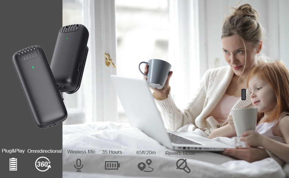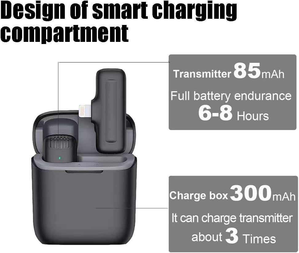 【مع صندوق شحن مجاني ونطاق صوت 65 قدم】يأتي مع صندوق شحن (مشابه لصندوق الشحن لسماعات البلوتوث) بسعة 500 مللي أمبير، والتي يمكنها شحن الميكروفونات التي توضع على طية الصدر أكثر من 4 مرات. يمكن لميكروفون lav مشحون بالكامل أن يعمل بشكل متواصل لمدة 7 ساعات، وهو ما يعادل إجمالي وقت تشغيل الميكروفون حتى 35 ساعة. لا داعي للقلق بشأن نفاد البطارية أثناء العمل في الخارج. اتصال خالٍ من العوائق بطول 20 مترًا/65 قدمًا