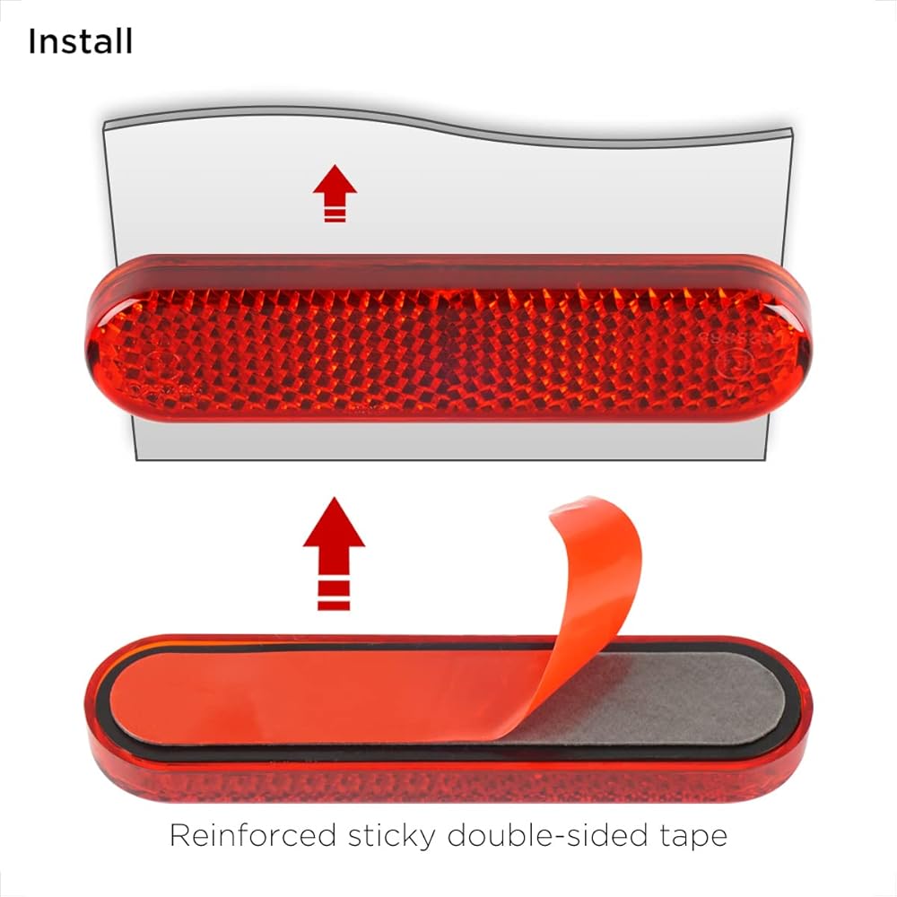 عاكسات دراجة نارية باللون الأحمر من Evermotor لاصقة، 3.42 بوصة عاكس دراجة بيضاوية ذاتي اللصق رؤية إضافية لرف ATV، قارب صندوق الذيل، السياج، عمود صندوق البريد (قطعتان)