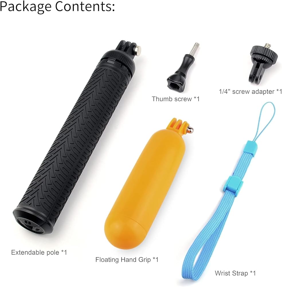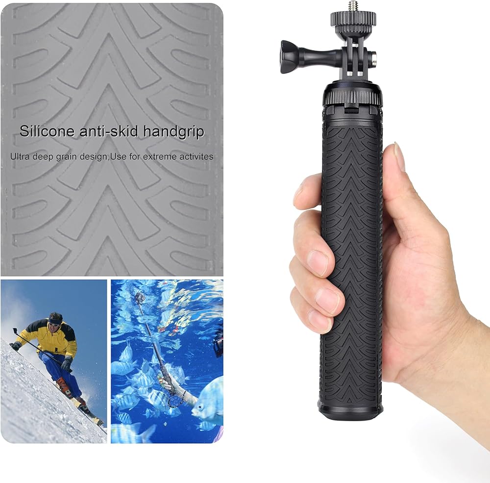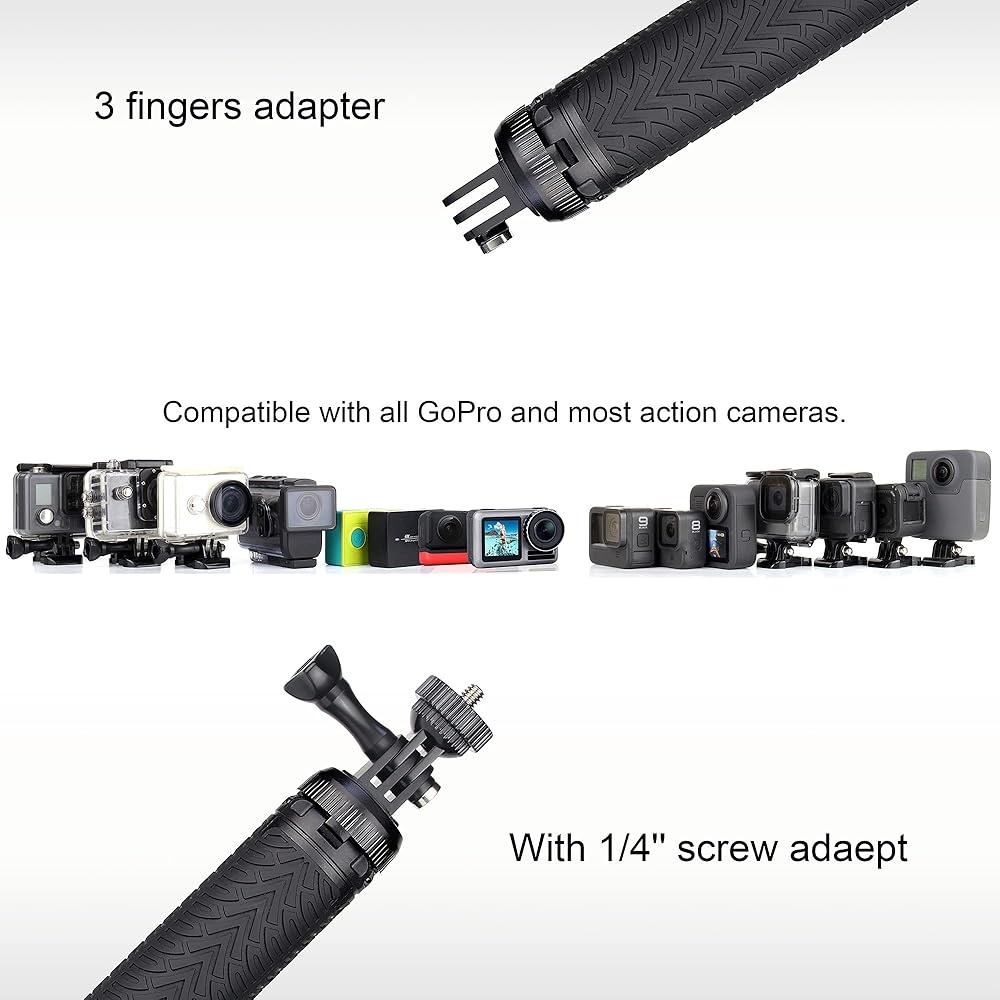 1) This hand grip monopod is compatible with all GoPro, most cell phone, and most action cameras that own 2 fingers mount. Such as GoPro Hero 12 11 10 9 7 6 5 4 3 3+ 2 Black Silver White Session Fusion Max Mini (2018) DJI OSMO Action SJCAM, etc. With the 1/4" adapter, it also fit for the most digital camera.