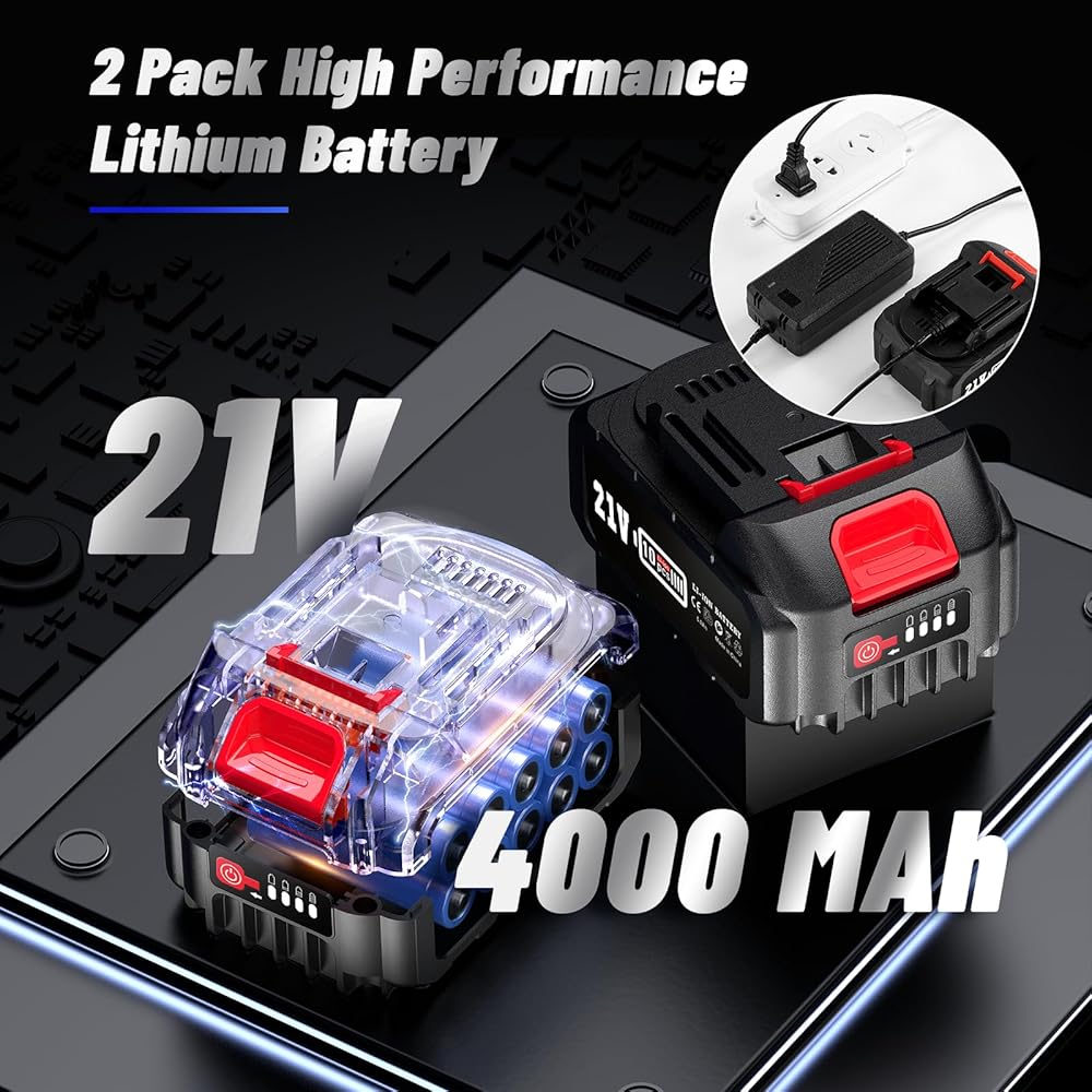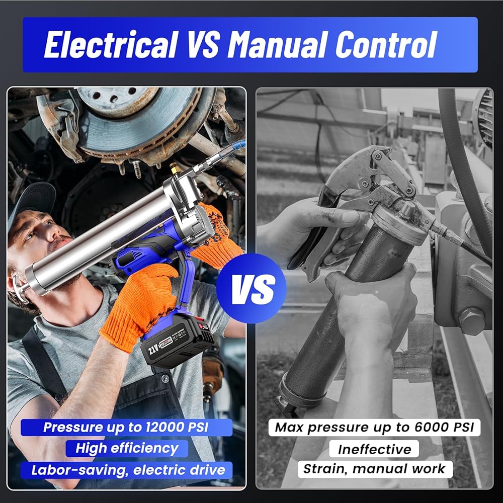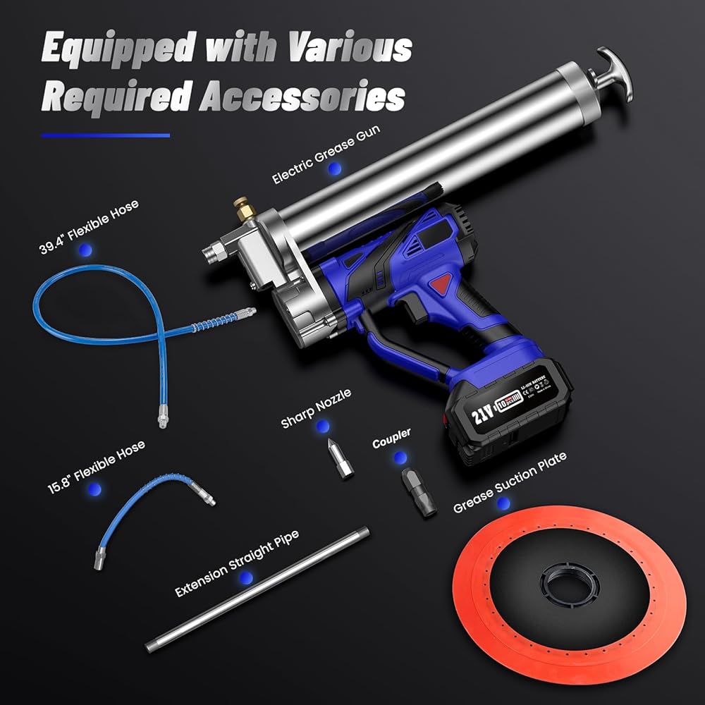 مسدس الشحوم يعمل بالبطارية، [تحديث 2023 قوي] طقم مسدس الشحوم الكهربائي 21 فولت مع خراطيم مقاومة للانفجار 12000 رطل لكل بوصة مربعة، مشغل متغير السرعة، مسدس شحوم لاسلكي مع بطاريات وشاحن