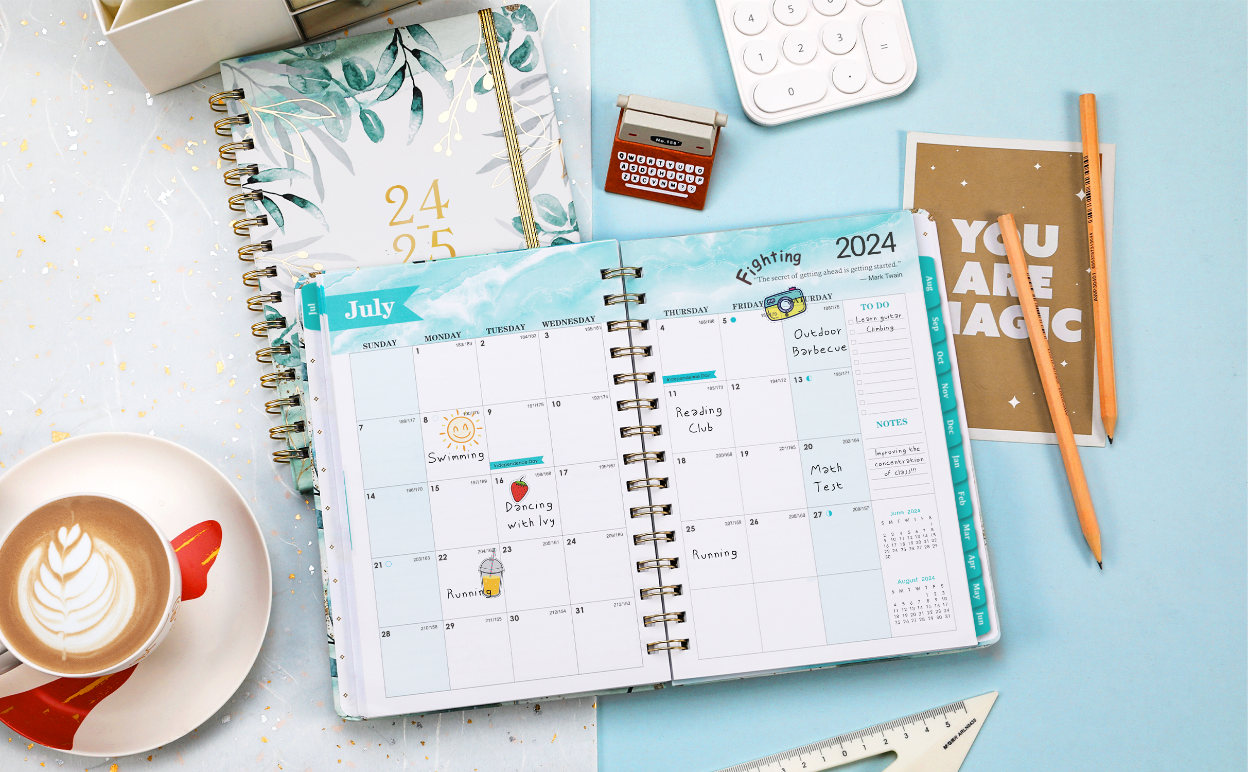 • 🌿الصفحات الشهرية - تتضمن كل صفحة شهرية من هذا المخطط 2024-2025 صفحتين فارغتين وتحتوي على تذكيرات للعطلات الخاصة وقسم الملاحظات لكتابة المواعيد المهمة. وفي الوقت نفسه، تحتوي كل صفحة شهرية على نظرة عامة شهرية مع كتل يومية فارغة بمقاس 1.2 بوصة × 1.25 بوصة، تقويم مرجعي سابق وحالي والشهر التالي للتخطيط طويل المدى.
