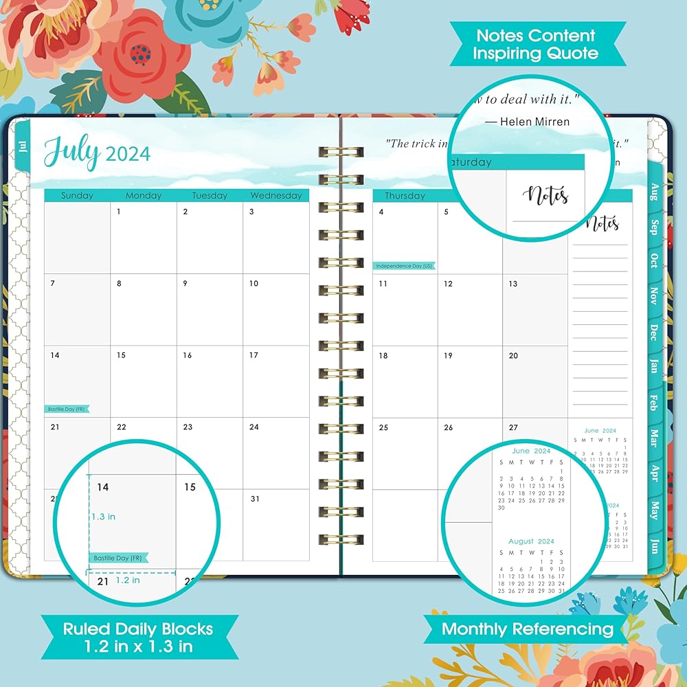• ☀ قوي ومتين - مخطط أكاديمي 2024-2025 مع ورق أبيض عالي الجودة، ورق هذا المخطط الأكاديمي مقاوم للحبر ومقاوم للتآكل. غلاف متين، التصميم الكلاسيكي على الغلاف يجعل مخطط تقويم 2024-2025 أكثر تفردًا. يسمح الربط الذهبي القوي ذو السلك المزدوج بقلب الصفحات بسلاسة ووضعها بشكل مسطح.