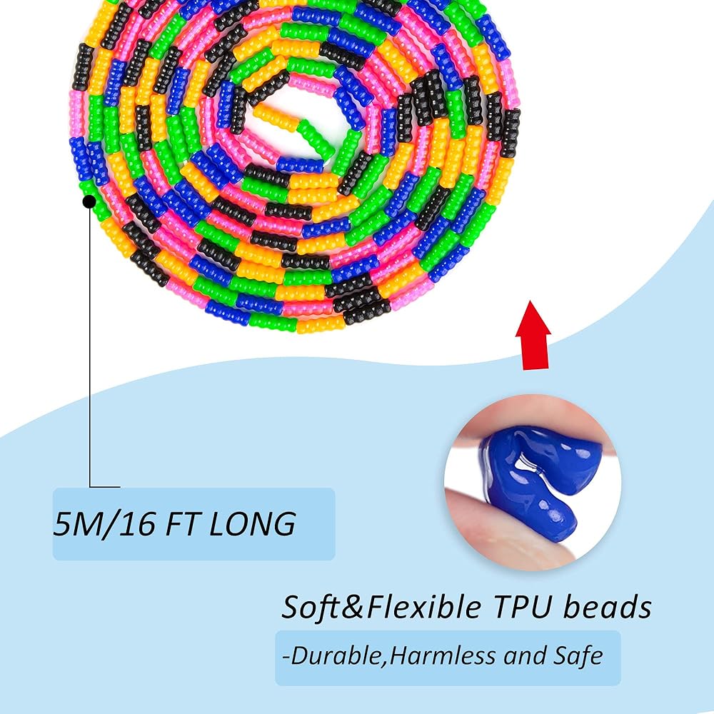 ⭐ BEADED JUMP ROPE:With soft beaded and segmentation design, material skipping rope is safe for kids to use.