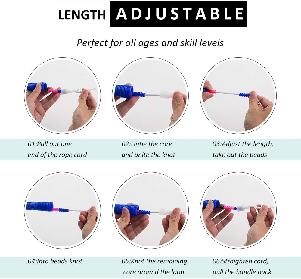 ⭐ LENGTH ADJUSTABLE:There are 10 extra beads in the package, you can adjust double dutch jump rope easily, to make the skipping rope longer, adjust the length to your satisfaction.