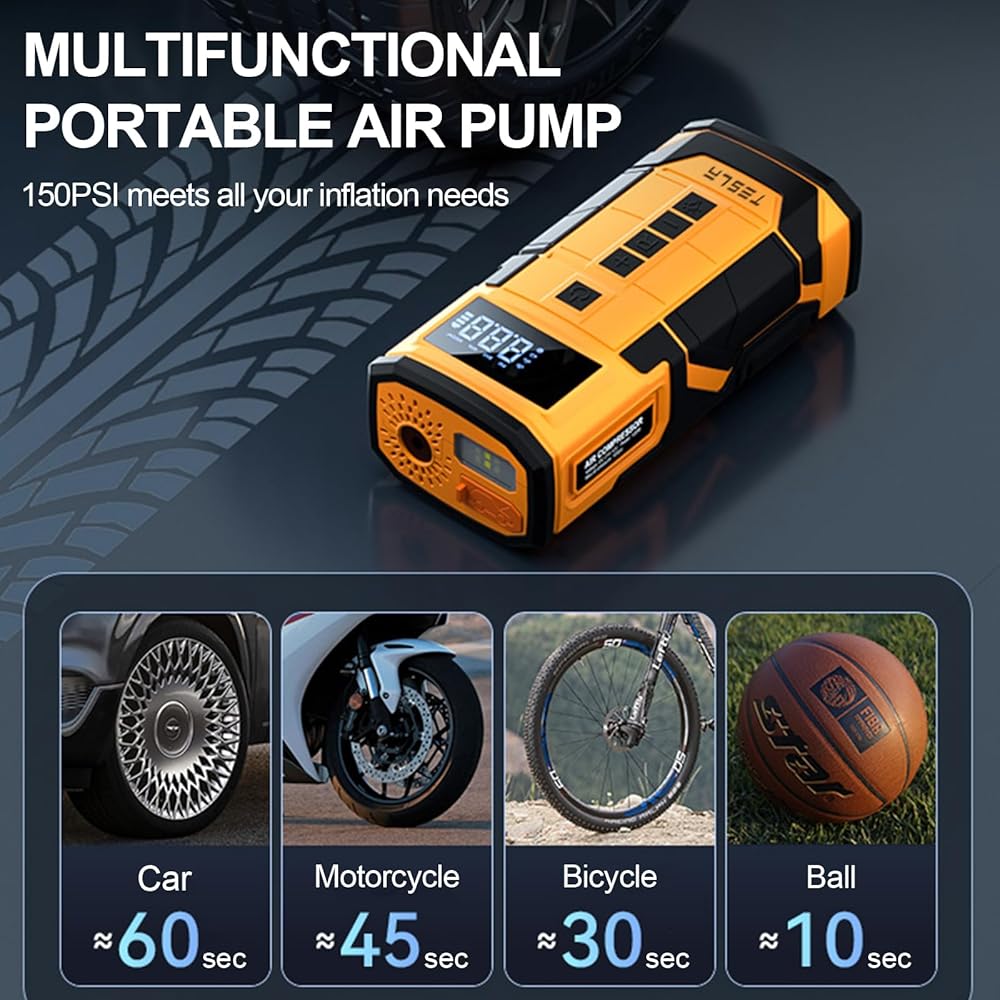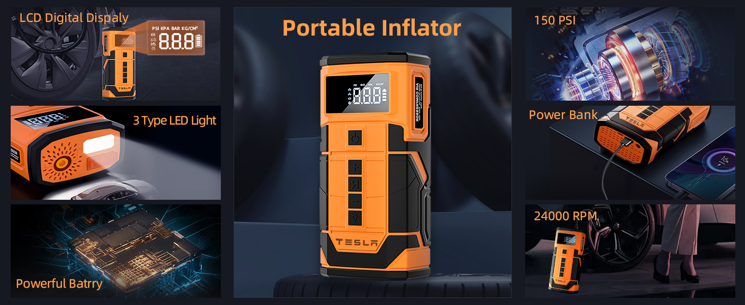 بسيط ومحمول: لاستخدام منفاخ الإطارات Tesla Model 3، قم بتوصيل أنبوب النفخ، وتشغيل الوحدة، واضبط ضغط الإطارات المطلوب (في PSI، وBAR، وKPA، وKG/cm2). إنه خفيف الوزن وصغير الحجم، مما يجعل من السهل قم بتخزينها في الحجرة الصغيرة بصندوق تيسلا الخاص بك عندما تحتاج إليها. يقترح COSLAKE ترك المضخة تبرد لمدة دقيقة أو دقيقتين لكل 5-10 دقائق من الاستخدام.