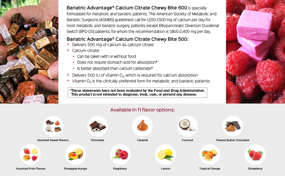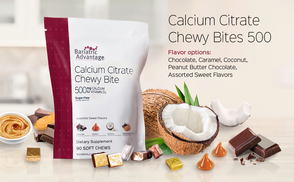 مكمل غذائي لعلاج السمنة: تم تصميم قطع مطاطية من سيترات الكالسيوم للأفراد الذين خضعوا لجراحة السمنة، حيث توفر الفيتامينات والمكملات الغذائية الأساسية.