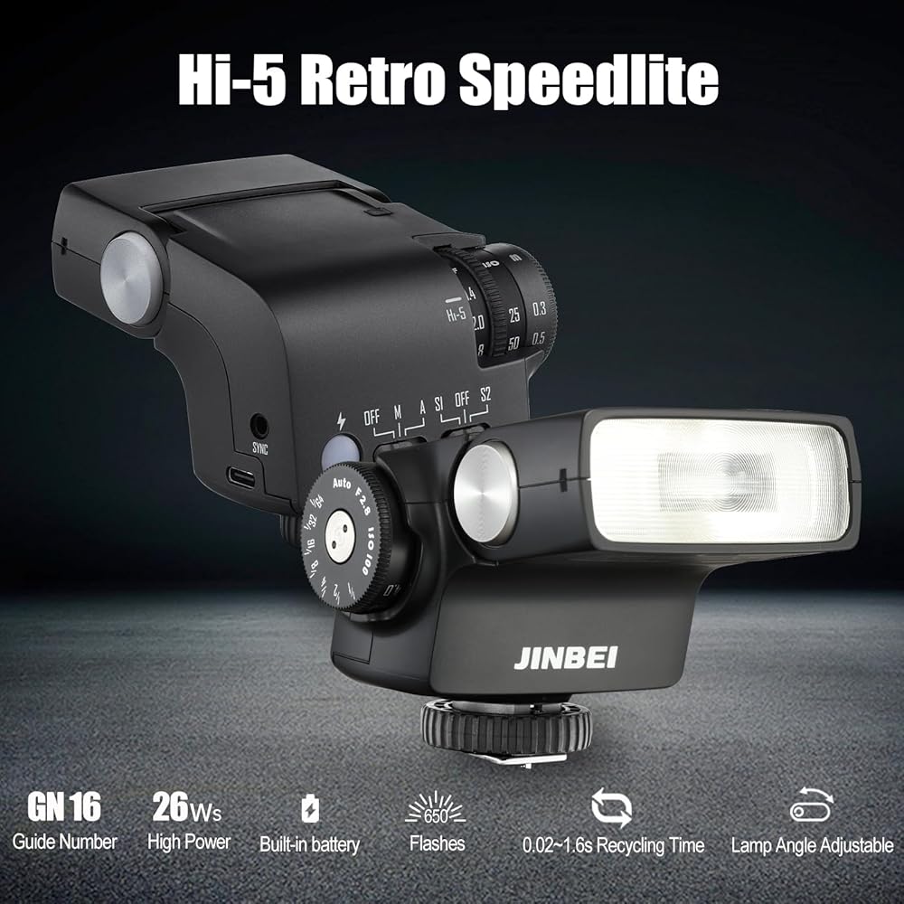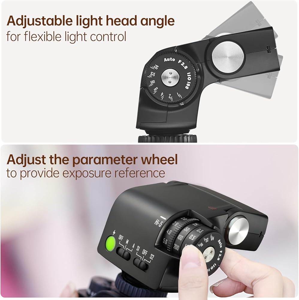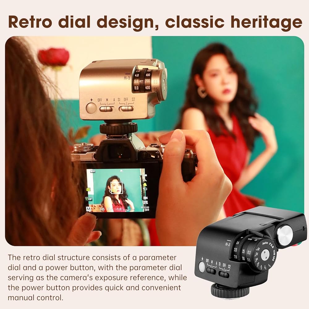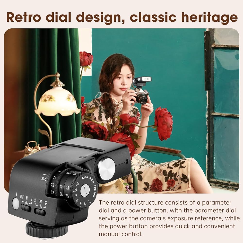 • 【أداء قوي، تألق لا نهائي】 يوفر فلاش HI-5 Retro Flash قوة مذهلة تبلغ 26 وات، مع درجة حرارة لون ثابتة تبلغ 6000K±200K. مع سبعة مستويات لتعديل الطاقة، فإنه يلبي احتياجات الإضاءة المختلفة الخاصة بك. تمنحك خياراتها لملء الضوء من زوايا مختلفة، سواء في الإضاءة المباشرة أو الانعكاس أو الومضات المتقطعة، مجموعة لا حصر لها من الخيارات للتعبير عن إبداعك وإضاءة كل لحظة يتم التقاطها.