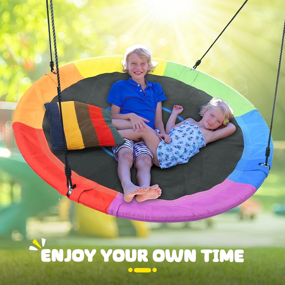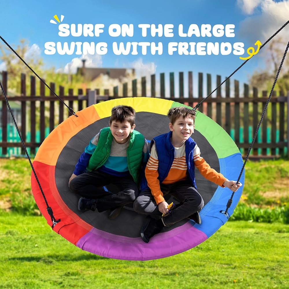 ✅مقعد متأرجح دائري محسّن: مصنوع من مواد عالية الجودة، المقعد المتأرجح الدائري الواسع مقاوم للاهتراء، ومقاوم للأشعة فوق البنفسجية، ويدوم لعدة مواسم من اللعب.