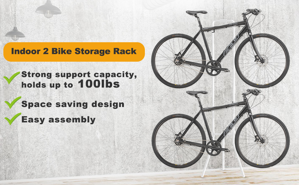 • سعة وزن عالية جدًا: يتميز رف الدراجة القائم بذاته بتصميم قوي قادر على دعم ما يصل إلى 100 رطل من الوزن. وهذا يعني أنه يمكنه حمل دراجتين بشكل آمن، بغض النظر عن نوعها أو حجمها. هذا الرف مصنوع من معدن قوي ومصمم لتحقيق التوازن، ويوفر مساحة تخزين موثوقة لدراجاتك القيمة.