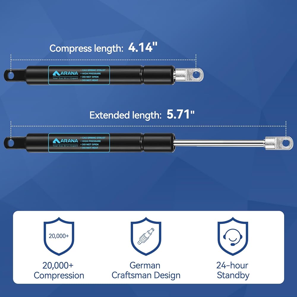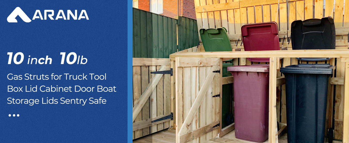 ✅ نوابض غازية بوزن 10 رطل - يمكن استخدام دعامات زنبركية الغاز من ARANA مقاس 10 بوصات لرفع الخزانة/صندوق الأدوات/صندوق الألعاب/غطاء صندوق العمل لفتحه وإغلاقه بهدوء، تأكد من أن الغطاء يتراوح بين 8-11 رطلاً؛