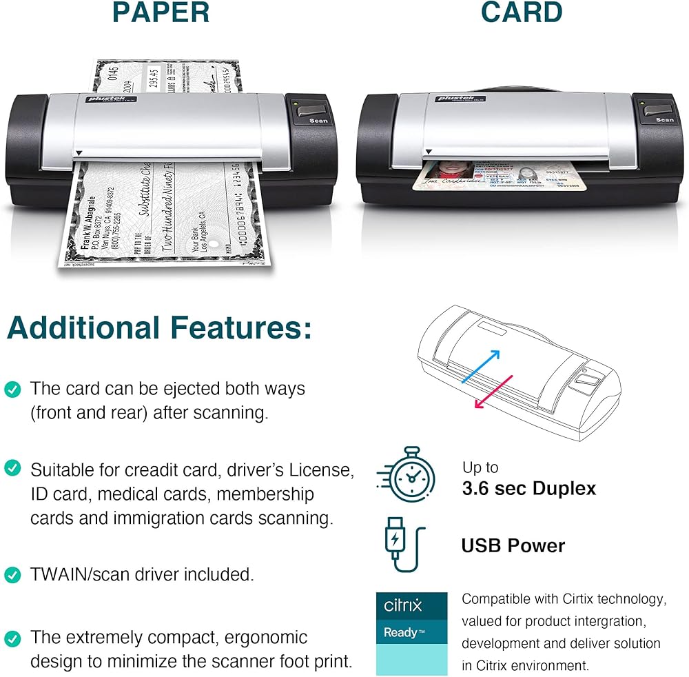 مسح فعال للبطاقة والهوية: يقوم Plustek D620 بمسح أي بطاقات هوية أو جانب مزدوج لرخصة القيادة في 3.6 ثانية فقط بنقرة واحدة.