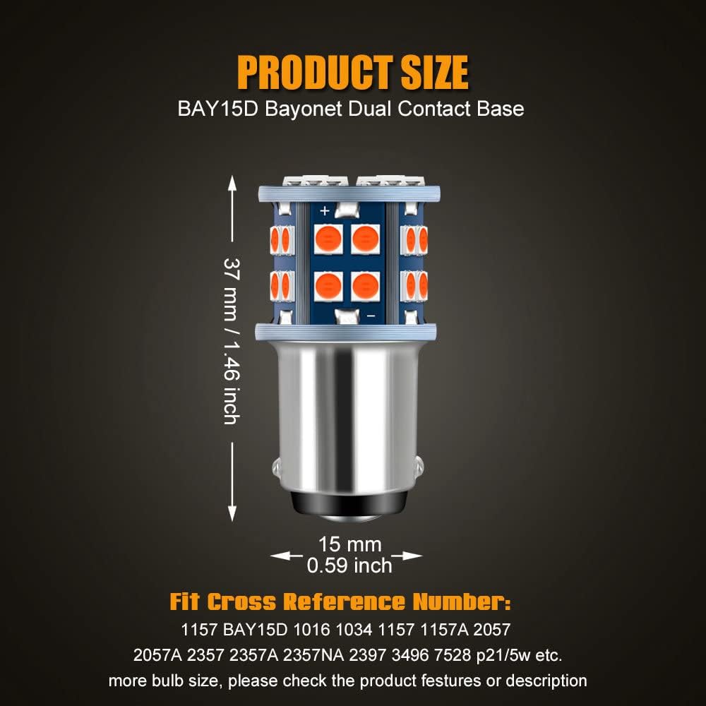 • Could fit bulb size: BAY15D 1016 1034 1157 1606 1662 2057 2357 2397 3496 7528 1034 1035 198 7528L 94 1076 1157LL 2357LL 2057LL 198LL P21/5W 7537 and 1154 etc. could fit your vehicle brake light. as long as your bulb size as above reference bulb size