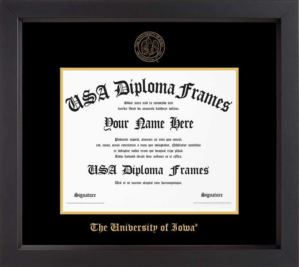 إطار دبلوم مرخص من جامعة أيوا - إطار خشبي أسود غير لامع مع طلاء أسود وذهبي - يناسب درجات 8.5 بوصة × 11 بوصة - إطار دبلومة احترافي للتعليق على الحائط - إطارات دبلومة الولايات المتحدة الأمريكية