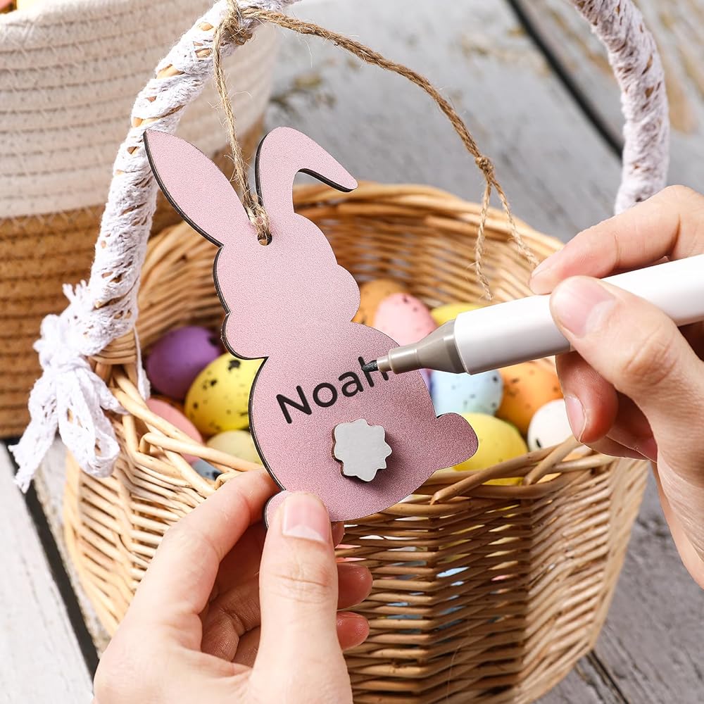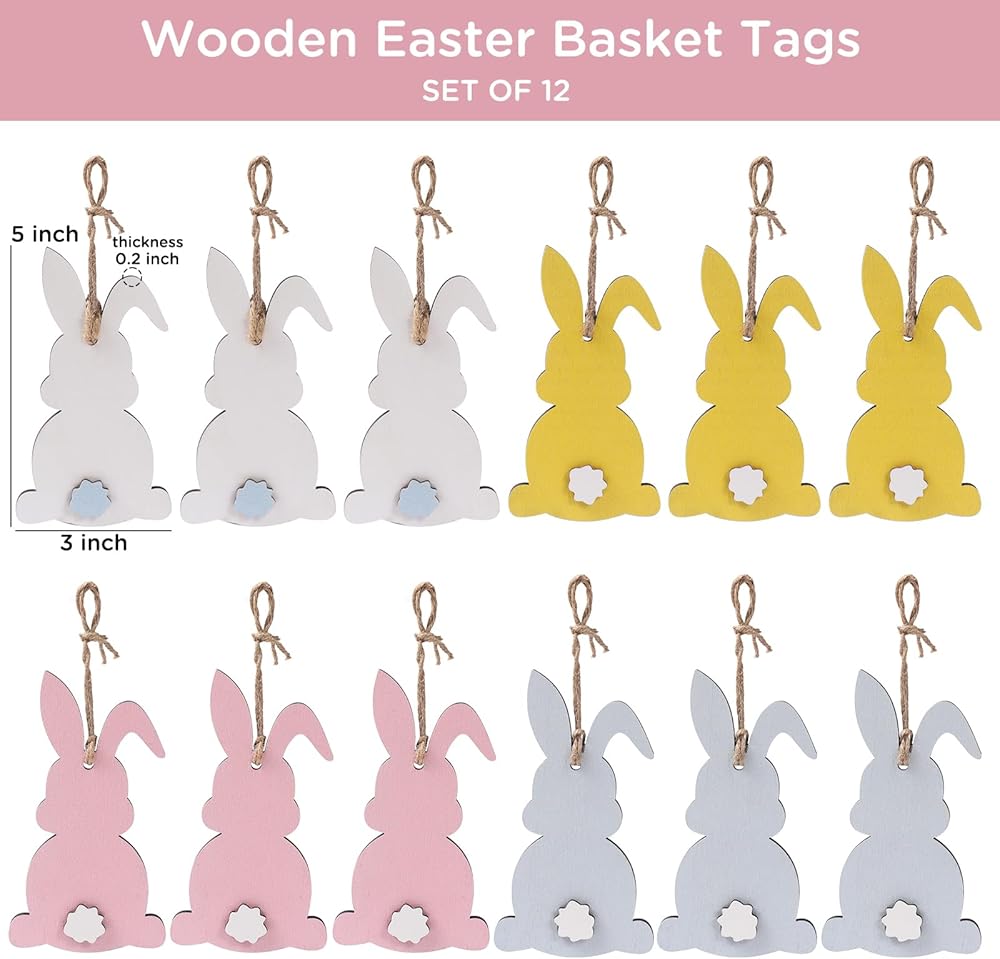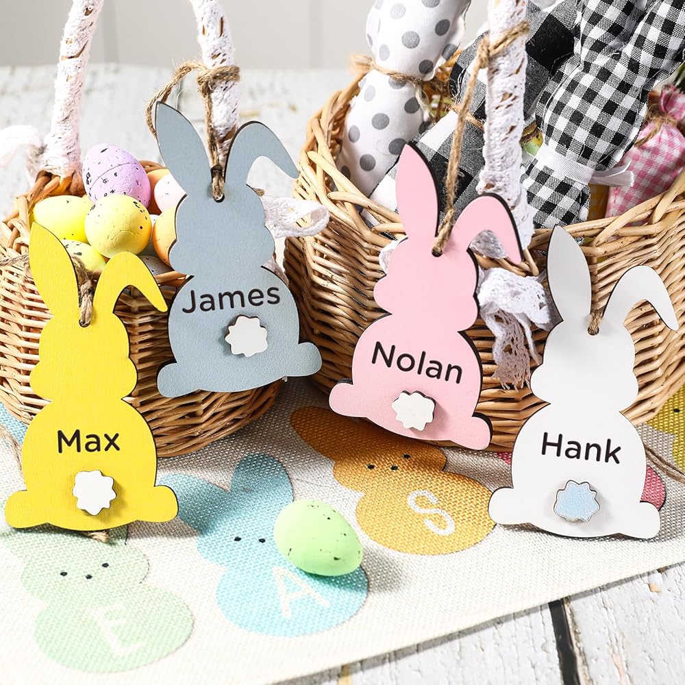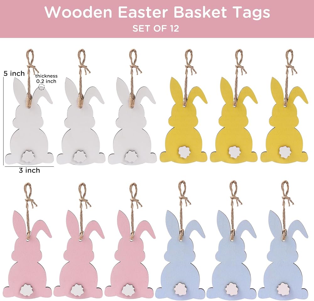 سوف تحصل على 12 قطعة من بطاقات أسماء سلة عيد الفصح (الحجم تقريبًا 3.9 × 3.3 × 0.2 بوصة). تتميز كل بطاقة بتصميم أرنب عيد الفصح الرائع، مما يضيف لمسة من السحر إلى سلال عيد الفصح الخاصة بك.