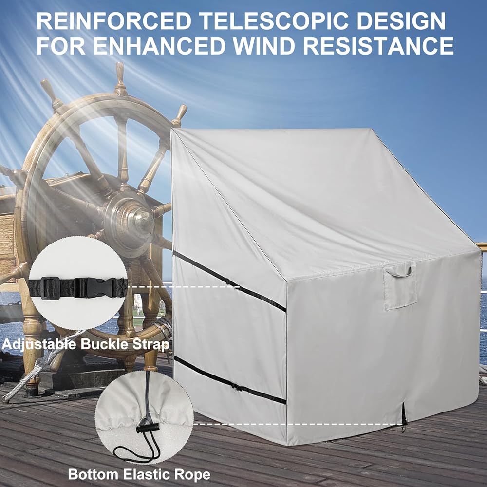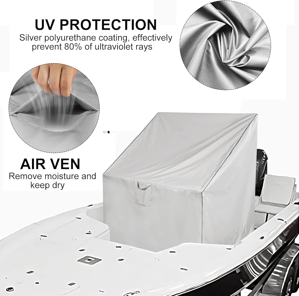 من أجل التعامل مع الظروف الجوية القاسية مثل الرياح العاتية، تم تجهيز غطاء وحدة التحكم المركزية لدينا أيضًا بحزامي تثبيت قويين لضمان تثبيت الغطاء على وحدة التحكم المركزية للقارب ومنع الغطاء من أن يتطاير أو يتفكك بسبب الريح. يمكنك الاستمتاع بالحياة دون القلق بشأن ثبات الغطاء.