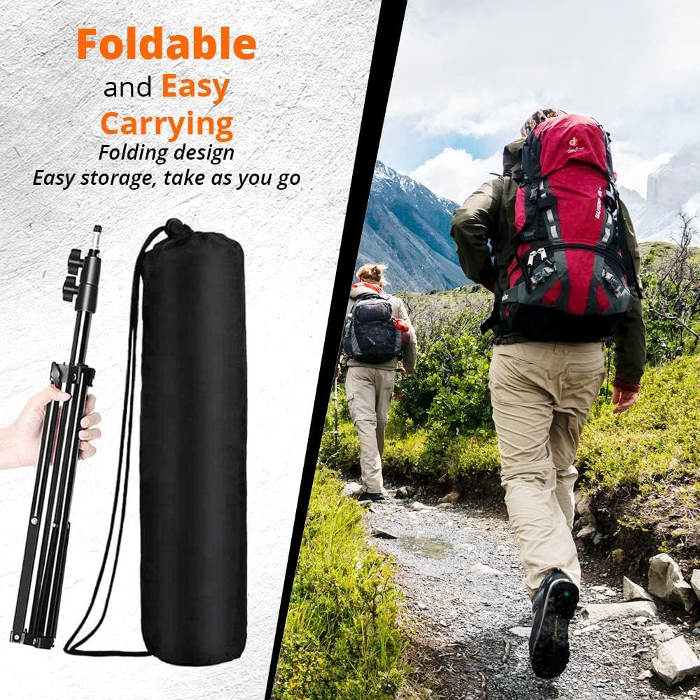 تركيب سريع، قابل للطي، وخفيف الوزن] هيكل بسيط وصغير الحجم يجعل هذا الحامل ثلاثي القوائم يمكن تركيبه بسرعة ويساعدك على التقاط اللحظات العابرة والرائعة. ميزة قابلة للطي ومريحة للتخزين والحمل، ويبلغ حجم الحامل ثلاثي القوائم 28 بوصة فقط بعد طيه. ووزن أقل من 2.2 رطل يسمح لك بحملها إلى أي مكان، أو حفلة، أو تصوير داخلي أو خارجي، أو السفر أو البث المباشر، تمامًا كما يحلو لك.