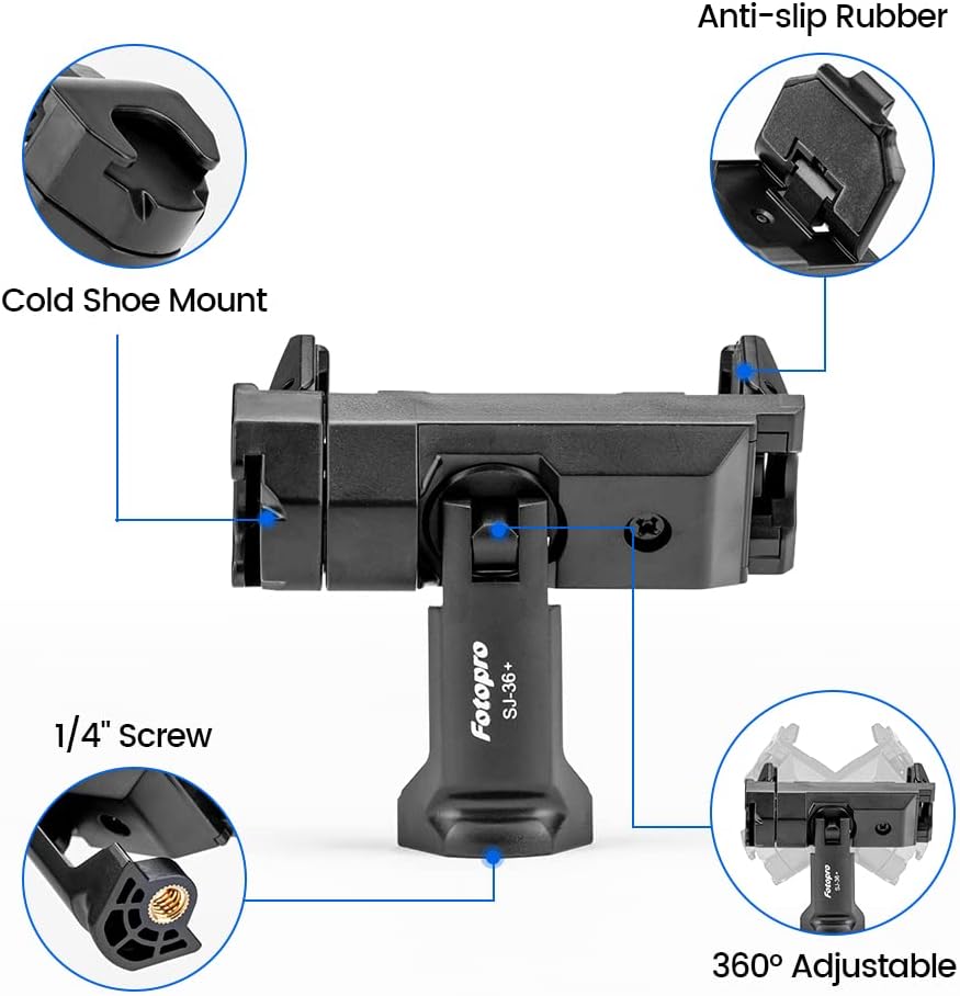 • 【Universal Phone Holder】Fotopro SJ-86 Phone Tripod Mount is suitable for any smartphone from 2.20 inches to 3.54 inches wide to meet the needs of smartphone photographers and video makers.