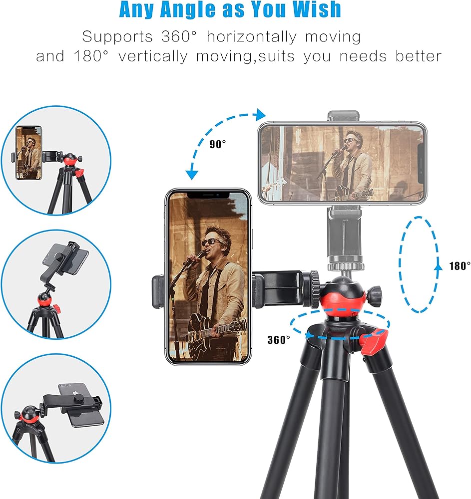 【متعدد الاستخدامات】متوافق مع معظم الكاميرات والهواتف الذكية وإضاءة حلقة LED. حامل ثلاثي مثالي لالتقاط الصور في حفلات أعياد الميلاد أو العشاء العائلي أو احتفالات الشركة أو التخييم أو مشاهدة المعالم السياحية