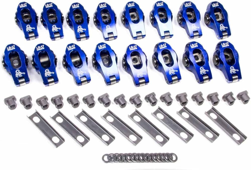 Rocker Arm - Race Series - 8 mm Pedestal Mount - 1.70 Ratio - Full Roller - Aluminum - Blue Anodize - GM LS-Series - Set of 16
