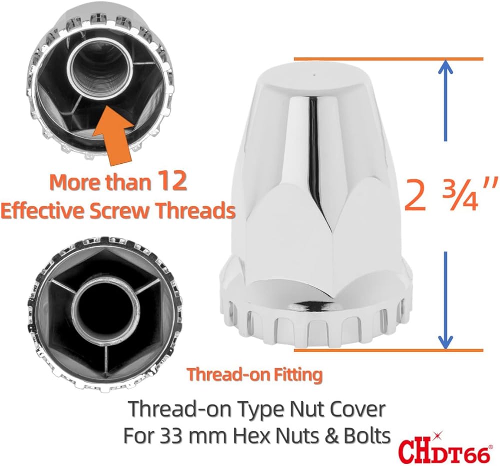 - Lug Nut Covers Height: 2-3/4", Fits for 32/33mm Hex Nut with Flange