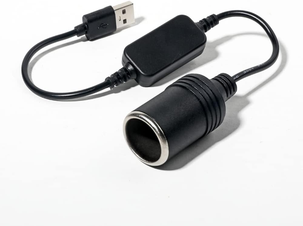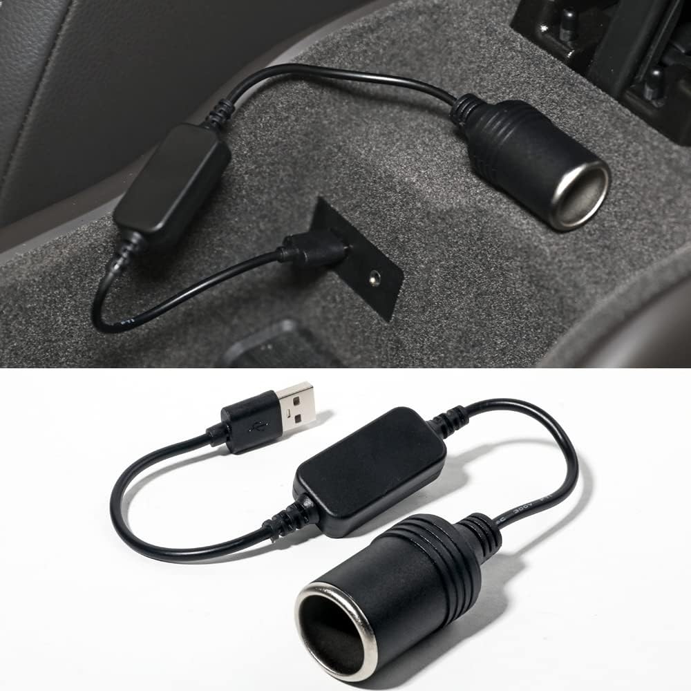 USB A ذكر إلى 12 فولت مقبس ولاعة سجائر السيارة كابل محول طاقة أنثى، مناسب لمسجل القيادة، والكلب الإلكتروني، ومنقي السيارة، وغيرها من المعدات الإلكترونية للسيارات
