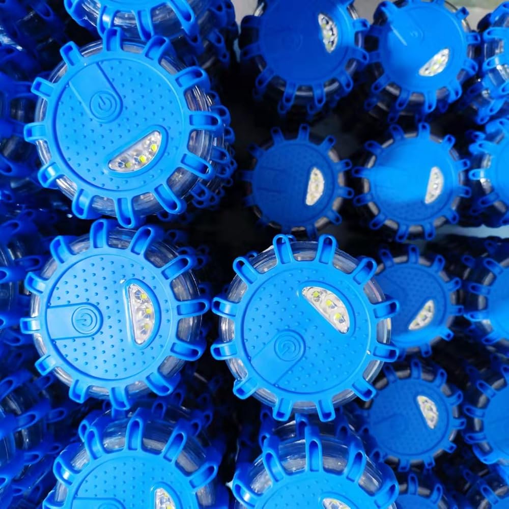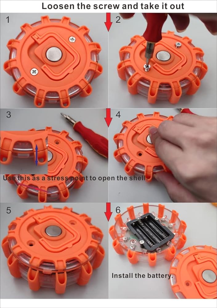 3 عبوات مشاعل طريق LED برتقالية، مصابيح طوارئ، منارة أمان على جانب الطريق، مجموعة مضيئة تحذيرية وامضة قرصية، مع قاعدة مغناطيسية وخطاف (البطاريات غير متضمنة) (3)