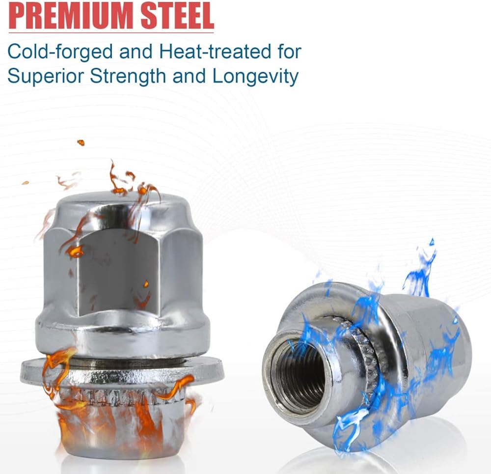 🚗 【M12x1.25 صواميل العروة 】 - 【قوة ومتانة عالية 】 فولاذ عالي الجودة مزخرف على البارد ومعالج بالحرارة من أجل أقوى وأكثر متانة لتلبية معايير OEM أو تجاوزها. مكافحة الصدأ ومكافحة جردت.