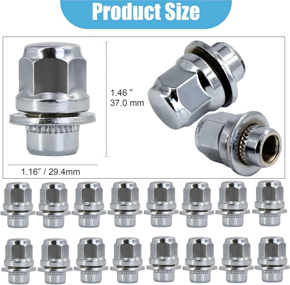 🚗 【M12x1.25 صواميل العروة 】-【صواميل العروة على طراز المصنع 】حجم الخيط: 12 مم × 1.25 / 12 × 1.25 / M12 × 1.25؛ مقعد 60 درجة؛ مقاس سداسي/مفتاح الربط: 13/16 بوصة 21 مم؛ 1.46 × 1.16 بوصة (1.46 بوصة/37 مم) الطول؛ العرض 1.1 بوصة (28 مم)، مفتاح ربط سداسي: 0.83 بوصة (21 مم). تتضمن العبوة: 20 قطعة M12x1.25 (مجموعة من 20) صواميل عروة من الكروم.