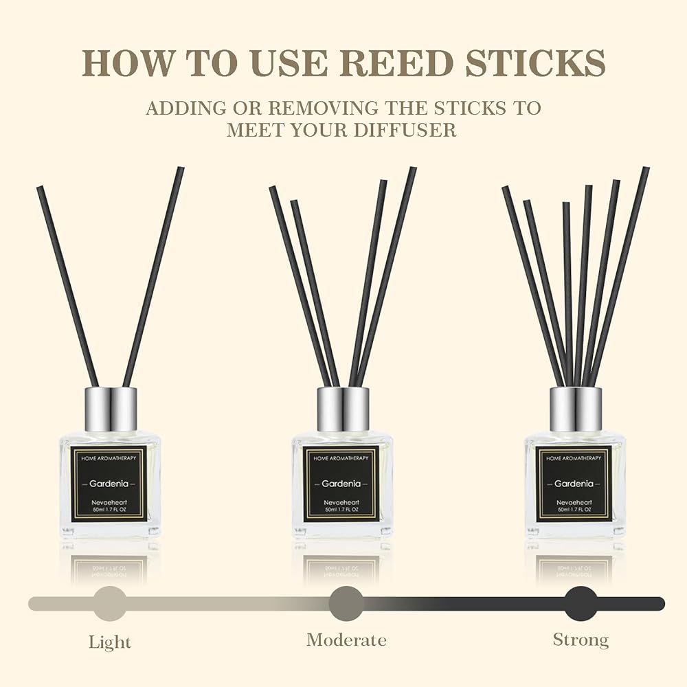 تحكم سهل في الرائحة - يمكنك اختيار إضافة أو إزالة عدد أعواد القصب لتتناسب مع تفضيلاتك. عندما يضعف العطر، ما عليك سوى قلب أعواد القصب رأسًا على عقب أو استبدالها بأخرى جديدة. يوصى باستخدام 2 إلى 4 أعواد من القصب لكل زجاجة.