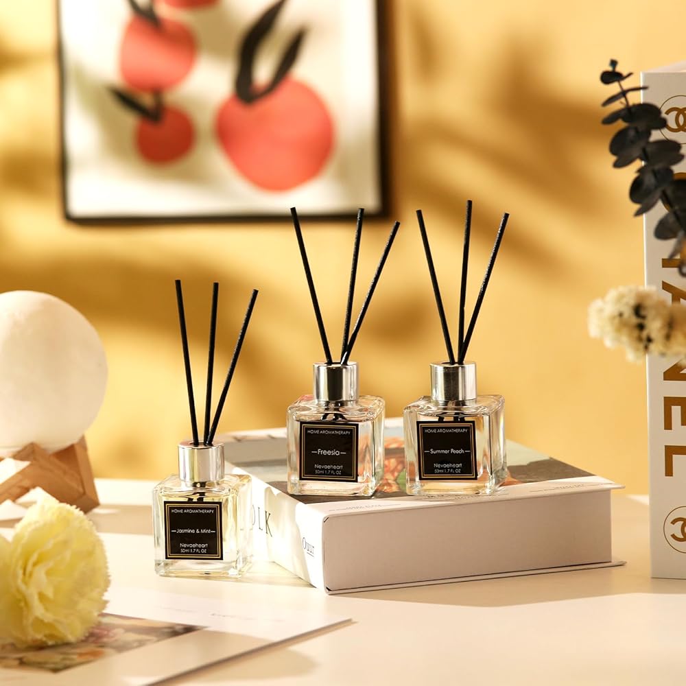 فكرة هدية ممتازة - (1)3 زجاجات زجاجية مملوءة بزيوت مختلفة. (2) 12 عصا لنشر الزيت. (3) صندوق هدايا حديث وموجز. كما نقدم خدمة عملاء عالية الجودة. يرجى التواصل معنا في حالة وجود أي مشكلات وسنبذل كل ما في وسعنا لتصحيح الأمر بسرعة.