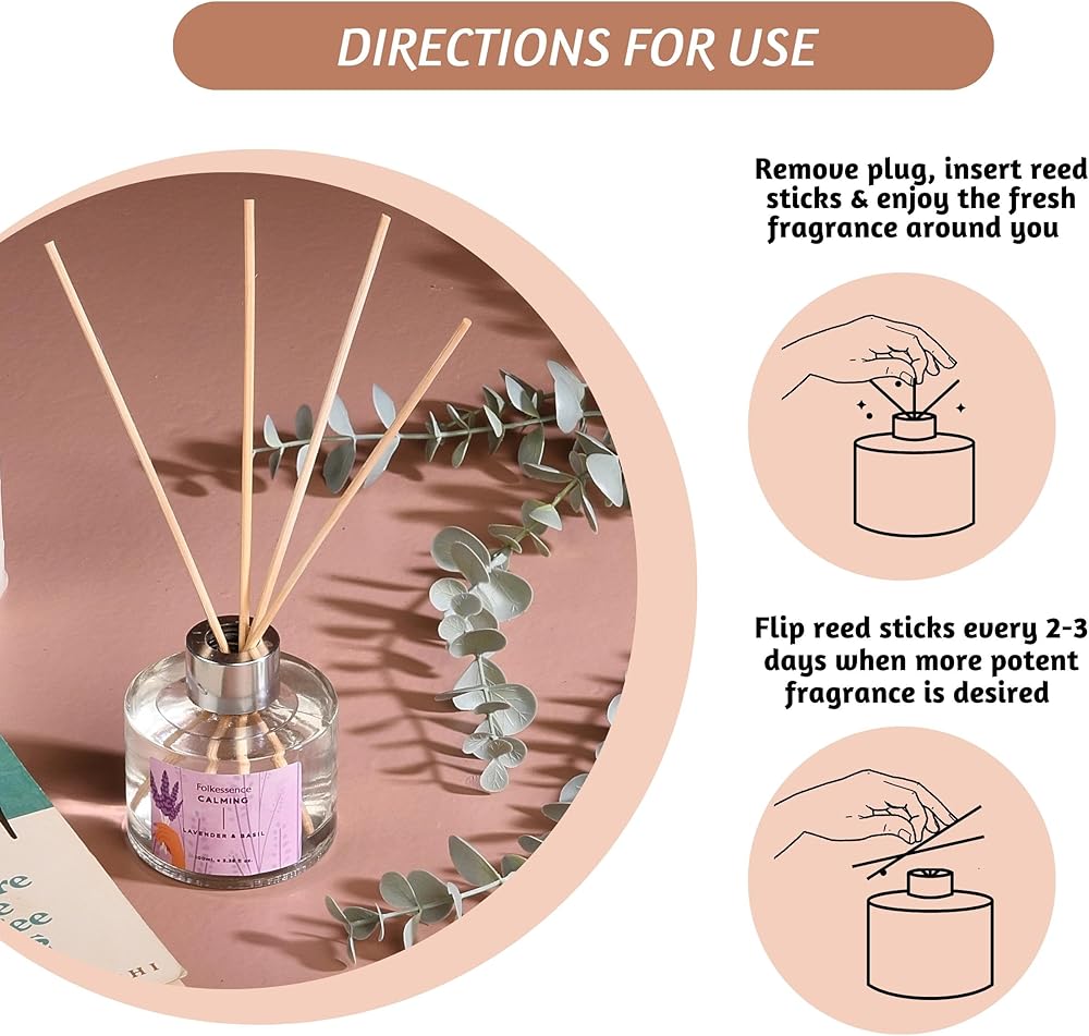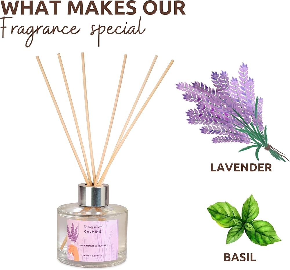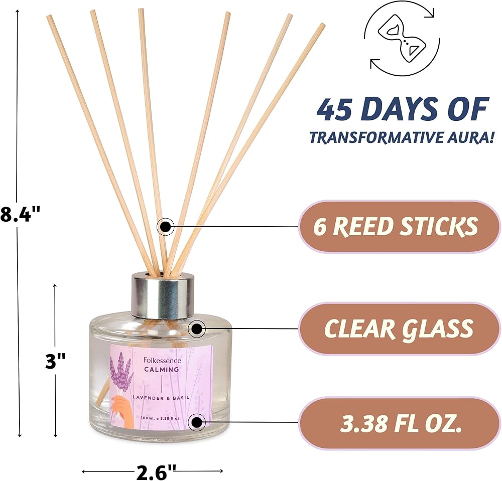 [روائح منعشة] - ستجعلك الرائحة الغنية والترابية لموزع قصب زيت اللافندر والريحان تشعر بالثبات والارتباط العميق بجذورك من خلال طريقة للتأمل في قوتك الداخلية والصحوة الروحية.