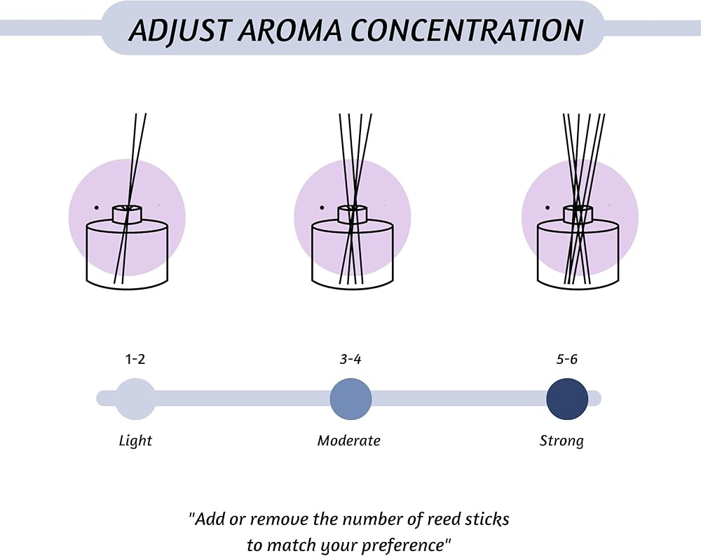[تعليمات الاستخدام] - أدخل أعواد القصب داخل زجاجة الموزع. يتم توزيع الزيت العطري بلطف من خلال أعواد الروطان الطبيعية. يُطلق القصب الخاص بالناشر رائحة مستمرة في منازلكم. إذا بدأت الرائحة في التلاشي، اقلب أعواد القصب رأسًا على عقب. إن أجهزة توزيع الروائح الطبيعية من القصب متعددة الأغراض ويمكن وضعها في أي ركن من أركان منزلك.