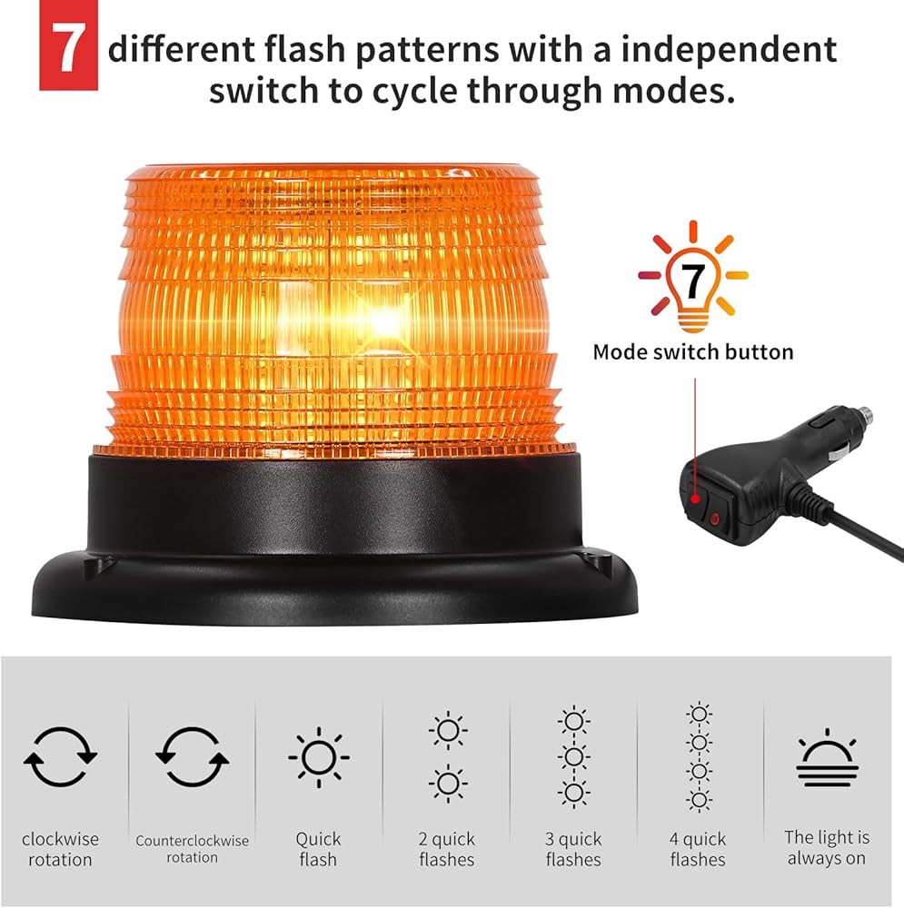 ★تركيب سهل: تم تصميم ضوء LED القوي هذا خصيصًا للعمل على جميع المركبات! أضواء السلامة للشاحنات. قم بتوصيل هذا في ولاعة السجائر الخاصة بك بجهد 12-24 فولت، ومع الجزء السفلي الممغنط ضعه على أي معدن خارجي مثبت بمغناطيس في الأعلى.