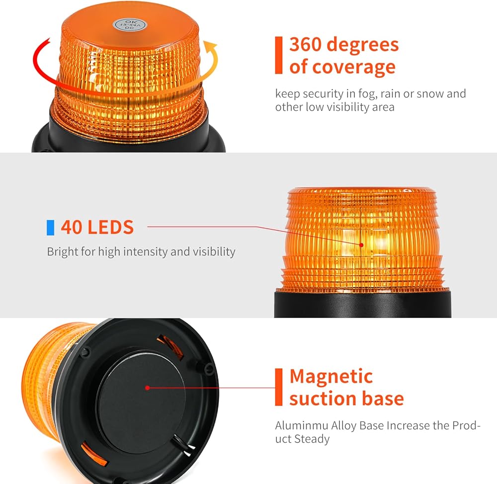 ★إضاءة منارة فائقة السطوع: 40 مصباح LED فائق السطوع مع عدسة PC متينة، تغطية 360 درجة. حافظ على الأمان في الضباب أو المطر أو الثلج وغيرها من المناطق منخفضة الرؤية.