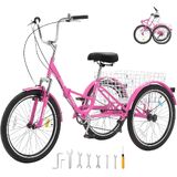 Fold and Go Anywhere: Take on the streets with ease with VEVOR adult folding tricycle. Foldable for effortless storage and transport, it's your perfect companion for commuting, shopping, or outdoor fun. With a stable triangular frame and a roomy basket supporting up to 265lbs, it's ready for any adventure.