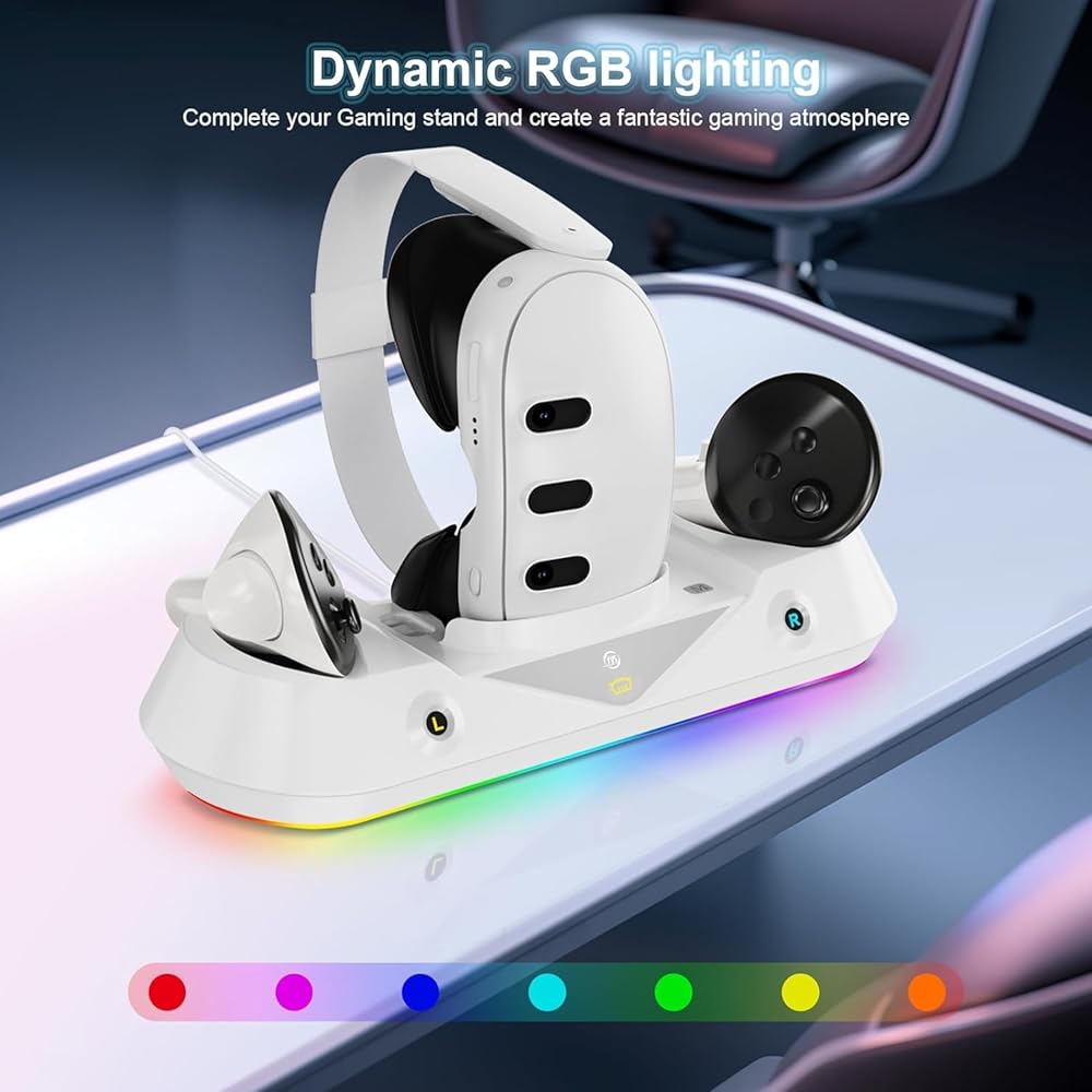 مزود بإضاءة RGB ومؤشرات LED، فهو ليس فقط قاعدة شحن سريعة، بل أيضًا حامل تخزين أنيق لعرض مهمتك 3 منظمة ويسهل الوصول إليها.