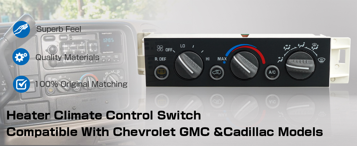لوحة التحكم في المناخ لسخان مكيف الهواء مع مفتاح مزيل الضباب للنافذة الخلفية متوافق مع كاديلاك إسكاليد 1999-2000 شيفروليه سوبربان 1500/2500/تاهو 1996-2000 جي إم سي يوكون 1996-2000