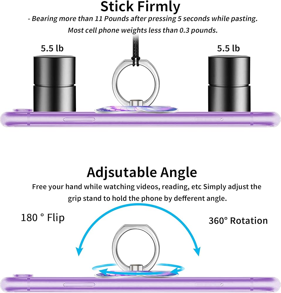 الميزات: يستخدم كمقبض حامل يحمل الأجهزة بقوة، ويمنع الأجهزة من السقوط. كمسند لأصابع الهاتف الخلوي، دوران 360 درجة وقلب 180 درجة لضبط هاتفك، حرر يدك لمشاهدة مقاطع الفيديو وتصفح الويب.