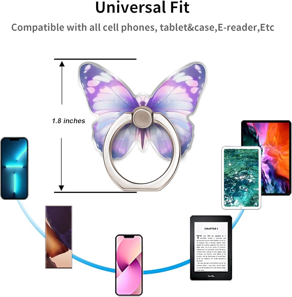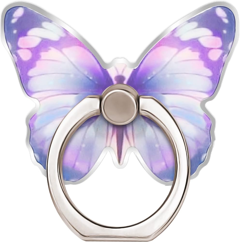 حامل الفراشة ذو الحلقة المعدنية للهاتف الخلوي الأرجواني، مسند للأصابع وحامل خلفي ومقبض يدوي متوافق مع الهاتف الذكي والكمبيوتر اللوحي والقارئ الإلكتروني وما إلى ذلك.