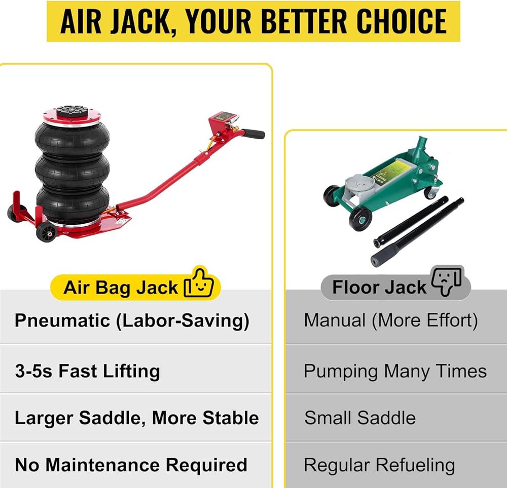 هيكل عالي التحمل: الرافعة الهوائية الخاصة بنا مصنوعة من الفولاذ عالي القوة الذي يجعل الجسم بالكامل قويًا ومتينًا. لن تتسرب الوسائد الهوائية محكمة الغلق أو تتعرض للخدش. بالإضافة إلى ذلك، فإن عجلاتنا مناسبة بشكل أفضل لجميع التضاريس، مما يساعدك على الحفاظ على سيارتك في أي وقت وفي أي مكان.