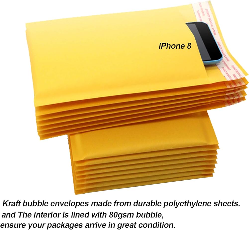 • Economical and Durable - The padded shipping envelopes are light-weight, small bubble mailers made of kraft, a thick layer of air bubbles provides extra protection during transit and ensure your packages arrive in great condition.