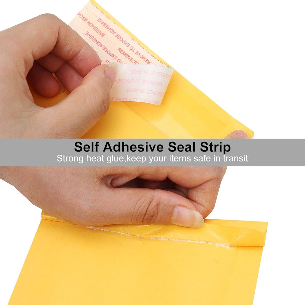 • Self-sealing Envelopes - These padded bubble envelopes come with a adhesive strip, simple peel and seal; The adhesive on the fold-over flap is strong enough and goes end-to-end. And the bubble envelopes feel nice to the touch and perfect for handwriting, labeling and stamping.