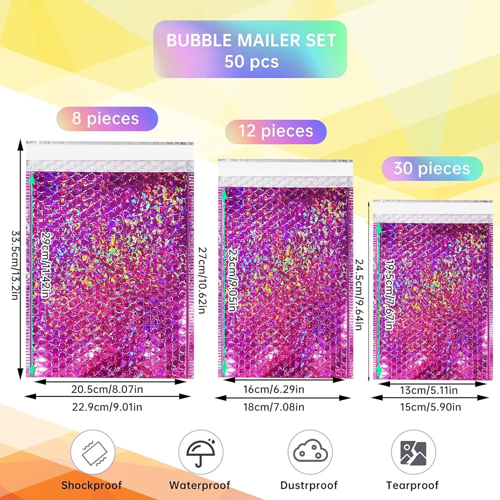 50 Pcs Self Seal Poly Bubble Mailers